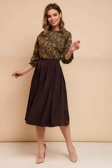 Фото товара 21157, темно-коричневое платье с принтованным верхом
