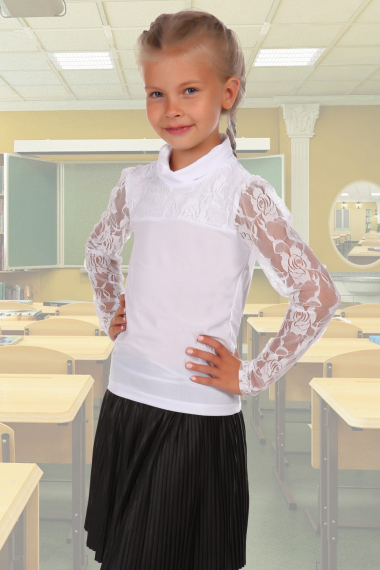Белая водолазка для девочки с кружевными рукавами Натали